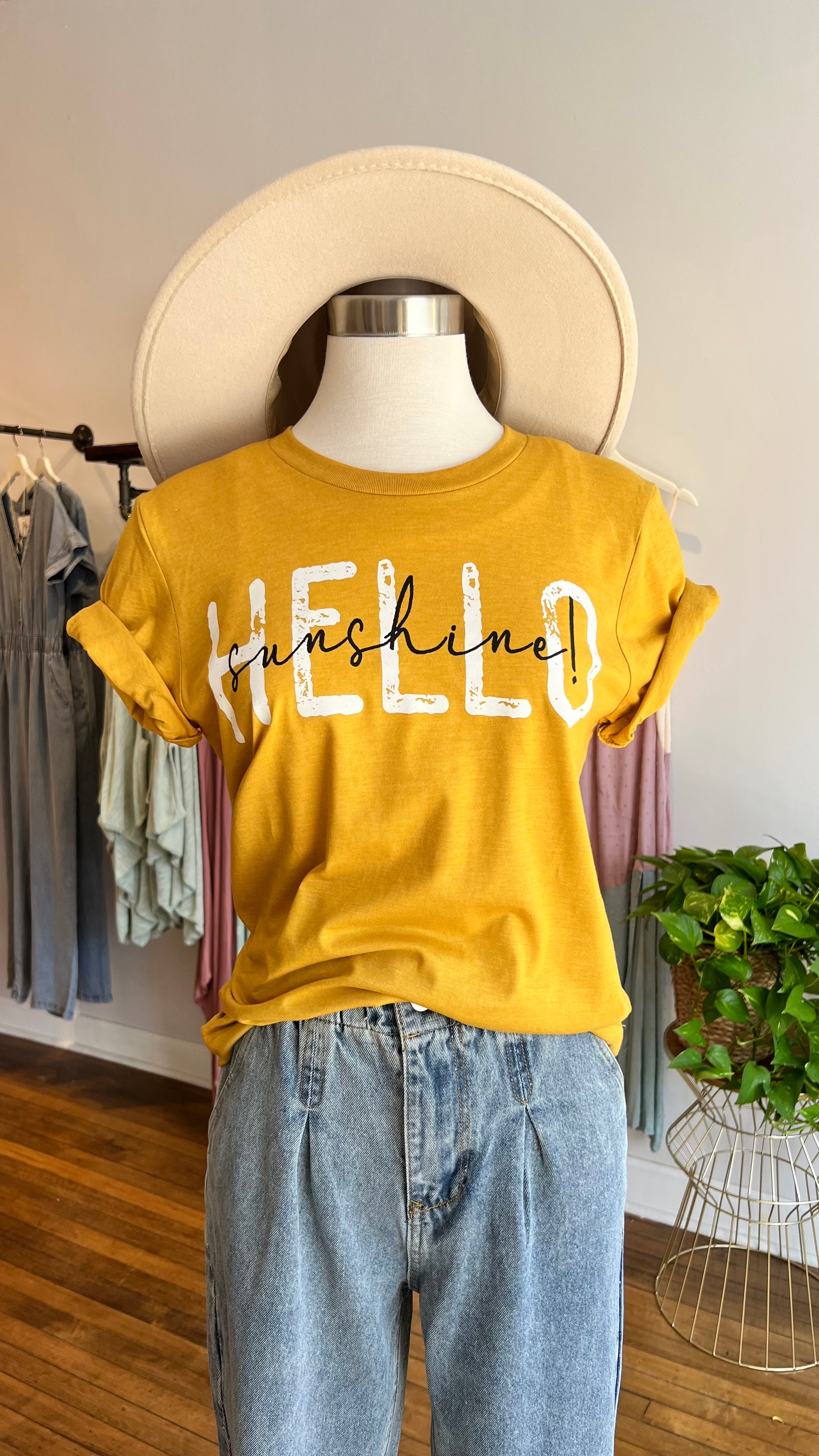 Hello Sunshine Distressed Graphic Tee